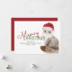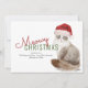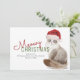 Envoyez vos salutations de vacances cette année avec cette mignonne aquarelle chatte sibérienne dans un chapeau de Père Noël avec le texte rouge et vert avec les mots "Meowy Christmas" mis dans la typographie moderne. Personnalisez-le avec votre salutation et nom(s). Un arrière - plan rouge coordonné est au verso de la carte.