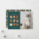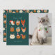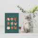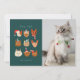 Carte modèle photo de Noël mignonne pour les propriétaires de chats avec une illustration de chats fantaisistes en costumes de vacances d'hiver. Le texte dit "meowy + bright."