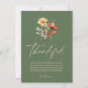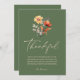 Cet élégant et élégant Thankful Fleur sauvage Modern Rustic Thanksgiving Holiday Card offre un design unique qui saisit parfaitement l'essence d'une fête d'automne moderne. Avec ses accents d'aquarelle et ses riches couleurs d'automne, il incarne l'esprit d'automne et le charme rustique. Le script de calligraphie raffiné et les tons vert olive invitant évoquent un sentiment de chaleur, ce qui en fait l'idéal pour les amis qui se rassemblent pendant Thanksgiving et l'insufflent avec une touche de vibrations qui ne manquera pas d'impressionner. Avec son mélange captivant d'éléments rustiques et modernes, cette carte Thanksgiving personnalisée est un complément merveilleux à tous les salutations d'automne. Partagez la joie et l'esprit de Thanksgiving et assurez-vous que vos sentiments se distinguent par une carte qui incarne la beauté d'un rassemblement de Thanksgiving qui fait chaud au coeur !