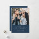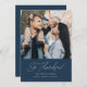 Carte Thanksgiving moderne avec la photo de votre famille en haut du design. L'expression "So Thankful" est affichée dans un script blanc manuscrit avec un arrière - plan de la marine. La photo Thanksgiving carte inverse pour afficher l'année en lettres blanches avec une photo supplémentaire.