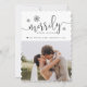 Partagez une photo mariage préférée ce Noël avec notre carte de vacances joyeusement festive avec "joyeusement toujours après" dans le script de calligraphie moderne accentué avec des illustrations de flocs de neige. Personnalisez avec vos noms et l'année. La carte revient à un motif de neige d'hiver blanc. Nous aimons ce style avec la forme de papier à pétoncles pour un charme de vacances supplémentaire!