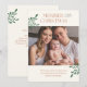 Belle et fraîche carte de voeux de Noël. Ce design moderne et jeune comprend un ensemble de polices contemporaines, une photo et du texte personnalisable à l'avant et à l'arrière de la carte. Les arrière - plans à l'avant et à l'arrière sont blancs avec des accents de jeune verdure fraîche. Customisez et personnalisez pour en faire votre propre.