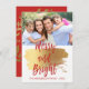 Joyeux et brillant Noël Carte photo de Noël à la main. La photo et le texte de ce script de brosse manuscrite peuvent être mis à jour et customisés avec votre photo et votre nom de famille. Cette carte affiche également le nom de famille et une feuille d'or au dos de la carte de Noël.