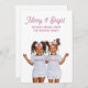 Merry & Bright this Christmas, with a charming twins holiday greeting featuring girls in matching merry and bright tees and wearing big smiles. The phrase Sets a festive tone, while the editable family name beneath adds a personal touch. Customize with your own family photo. A fun holiday card perfect for families with twins. Available as a printed card, digital download, or both, ideal for last minute sending.