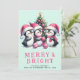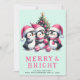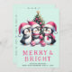 Cartes Pour Fêtes Annuelles Merry & Bright Mint et Pingouin de Noël rose