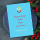 Cette carte de voeux Merry Chrismukkah présente une étoile de David dorée au centre sur fond bleu. Il y a trois boules de Noël rouges suspendues à l'étoile de David. La partie supérieure de la carte comporte les mots "Merry Chrismukkah" en écriture rouge. Au dos de la carte plate se trouve le motif à plus petite échelle avec les vœux de fêtes en dessous. Vous pouvez personnaliser le design avec le nom de votre famille. Une excellente façon de célébrer deux fêtes en même temps. Copyright Kathy Henis
