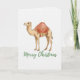 Front: illustrated camel with festive blanket, “Merry Christmas” text in green