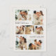 Send joyful holiday wishes with this modern family photo collage Christmas postcard featuring a warm, neutral-toned collage layout. The front showcases seven photo slots in a clean grid format, making it perfect for sharing family moments, pet portraits, or seasonal highlights. Text reads “We wish you a very Merry Christmas and a Happy New Year with love from” and your family name, offering space for personalized greetings that stand out in classic typography. The soft cream background and high-contrast layout give this card a timeless, cozy feel that complements both color and black and white photos. The back of the postcard includes a pre-formatted message on the left with ample room for personalization, plus space for mailing details on the right, making it a convenient and stylish postcard option. Ideal for families who want to feature multiple memories in one cohesive design, this photo card blends festive warmth with minimalist elegance. This card is a perfect choice for those who value thoughtful design, simplicity, and heartwarming connection. Whether mailed to loved ones near or far, it captures the magic of the season in a modern, gallery-style format that’s sure to be treasured.