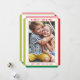 Un design de carte mignon qui ressemble à un bijou festif avec une grande photo de famille en portrait, et une couleur unie au verso, vous donnant l'occasion d'écrire un message personnel à la main.