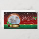 Merry Christmas on green background and stripe on lower third, add your photo inside the snow globe and your family name. Gold trim on top & bottom