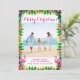 Send tropical holiday greetings with this bright Hawaiian style Christmas photo card. Features "Merry Christmas" in script typography, your favorite coastal photo framed with watercolor hibiscus flowers and palm leaves, and your personalized holiday greeting. The back has tropical flowers and palm leaves with a colorful "Aloha". A fun tropical holiday card brought to you by Cherry Lane Designs!