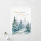 Watercolor winter trees in shades of green paired with script and modern typography holiday card.
