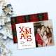 "Célébrez la saison avec élégance avec cette carte de vacances "Joyeux Noël". Doté d'une mise en page "XMAS" audacieuse et d'une touche de modernité, le design met l'accent sur une grande lettrage serif classique en rouge profond, accentuée par une étoile dorée éclatante pour une touche de magie de vacances. Le côté droit présente une photo de famille unique encadrée magnifiquement contre l'arrière - plan blanc minimaliste, ajoutant une touche chaleureuse et personnelle à votre accueil. Sur le dos, un riche et festif motif rouge plaid apporte charme traditionnel et ambiance de vacances cosy, faisant de cette carte un mélange parfait d'éléments contemporains et classiques de Noël. Personnalisez-vous avec votre nom de famille pour un accueil personnalisé et chaleureux." Merci de visite.