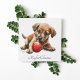 aquarelle d'un mignon chiot jouant avec une balle de noël. Personnalisable, modifiez le texte à votre goût