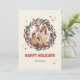 Partagez votre joie de vacances avec cette carte photo rétro classique de Noël avec une couronne rouge et verte festive, des "Happy Holidays" vintages en gras dans la police Superstar, et de l'espace pour votre photo de famille préférée. Personnalisez-vous avec votre nom de famille sur le devant et ajoutez une note chaleureuse sur le côté arrière pour un style de vacances nostalgique du milieu du siècle.