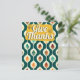 Cette carte d'action de grâce moderne datant du milieu du siècle présente un design turquoise et crème aux feuilles d'automne.