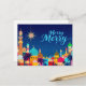 Send a truly unique and vibrant holiday greeting with this exotic and colorful design. The illustration features a fantastical cityscape reminiscent of Middle Eastern or North African architecture, with brightly colored domes and minarets set beneath a deep blue, starry night sky. A brilliant Star of Bethlehem hangs above the skyline, complementing the cursive "Merry Merry" greeting. This card is perfect for those seeking an unconventional, globally-inspired way to celebrate Christmas or the festive season.