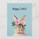 Cartes Pour Fêtes Annuelles mignon et beau lapin avec fleurs et lunettes