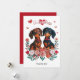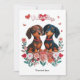 Surprenez quelqu'un de spécial avec cette adorable carte de la Saint-Valentin représentant deux adorables dachshunds, entourés de cœurs d'amour ludiques, de fleurs et du mot "Valentine" en haut. Le design charmant des chiens saucisses capture la chaleur et l'affection de la fête de manière amusante et fantaisiste. Personnalisez la carte avec votre propre message sous l'image, ce qui en fait un souvenir encore plus spécial pour votre être cher. Idéale pour les fans de doxie et les amoureux des chiens, cette carte est sûre de ravir le jour de la Saint-Valentin.