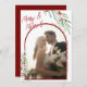 Mini Elegant Chic Merry et Marié Mistletoe Newlyweds Arch Photo Christmas Holiday Card - Une carte de Noël élégante et festive avec aquarelle hiver verdure dans les couleurs classiques rouge et vert des vacances. Parfait pour les jeunes mariés qui envoient leurs premières cartes de Noël ensemble à leur famille et à leurs amis. Personnalisez en ajoutant votre propre photo mariage. Tout le texte est modifiable.