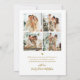 Minimalist Elegant Gold Script 5 Photo Merry Christmas Holiday Card.This festive and modern holiday card design features a beautifully hand-lettered Merry Christmas script in whimsical, swirly gold calligraphy over your main photo on the front. The back includes space for your personalized holiday message, accented with a sweet little heart doodle, along with a four-photo collage layout — making it a lovely 5-photo design overall.
