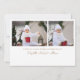 Elegant white Christmas card with a minimal modern design featuring your photo and "Happy Holidays," your name and the year in classic gold serif typography. Add two additional photos on the back, a personalized greeting to family and friends, and your first names.