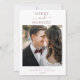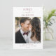 Cette carte de vacances minime en or rose et mariée photo nouvelle mariée est la formule de voeux de vacances simple pour un couple marié. Le design est composé d'une typographie classique rose vif et blanche associée à une police de caractères rustique mais élégante avec style lettré à la main.