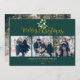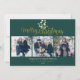 Elégant mistletoe script or photo collage de Noël carte de vacances. Le faux-pied vert aquarelle est accroché au script d'or chic Joyeuse typographie de Noël. Personnalisez le message, 3 photos, nom de famille et date sur le devant. Vous pouvez ajouter une autre photo au verso ou supprimer et laisser vide si vous préférez. Conçu par Thisisnotme©