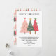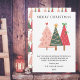 Send a cheerful, whimsical holiday greeting with this playful Christmas card design. It features three charmingly illustrated Christmas trees in a vibrant palette of pink, forest green, and berry red, topped with fun accents like bows, stars, and hearts. The simple, elegant text delivers a heartfelt message of peace, laughter, and family warmth. This modern and artistic card is perfect for creative families looking for a unique, colorful, and joyful piece of holiday stationery.