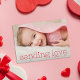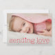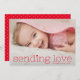 Ce carte photo sucré mais simple de la Saint Valentin présente une grande photo horizontale avec un accueil typographique rouge moderne qui dit "envoyer l'amour" accentué par un petit coeur doux. C'est la carte parfaite pour envoyer un doux salut de Saint Valentin à vos amis et votre famille.