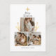 Simple, modern, and elegant Christmas Holiday postcard featuring three of your favorite family photos in a Christmas tree-shaped collage, with faux gold pine branches, script Merry Christmas wishes, and a gold star above. A custom message is featured on the reverse, accented by a chic golden bow ribbon. Upload your photos and customize the text with your family name, year, and Christmas greeting message.