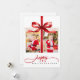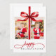This Modern Happy Holidays Red Minimalist Holiday Card is the perfect blend of elegance and festive cheer. The bold red bow gives the card a gift-wrapped look, making your holiday greeting feel extra special. With a clean white background and beautiful calligraphy, your photos shine as the centerpiece, capturing the warmth and joy of the season. On the back, a heartfelt message adds a personal touch that friends and family will love. Its simple yet striking design makes it easy to customize, creating a timeless keepsake that spreads holiday magic with style and grace.