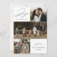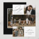 Carte de vœux moderne avec la phrase « Joyeux Noël » en élégante écriture noire sur fond blanc. Le devant du design présente 3 de vos photos de famille préférées disposées dans une mise en page de type collage. Personnalisez le devant de la carte de vœux multi-photos avec le nom de votre famille et l'année. La carte se retourne pour afficher une photo supplémentaire.