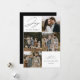 Carte de vœux moderne avec la phrase "Joie au Monde" en élégante écriture noire sur fond blanc. Le devant du design présente 4 de vos photos de famille préférées disposées dans une mise en page de type collage. Personnalisez le devant de la carte de vœux multi-photos avec le nom de votre famille et l'année. La carte se retourne pour afficher une photo supplémentaire.
