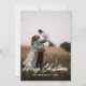 This modern minimal photo Christmas card is elegant and refreshing. It features a full photo front page with a hand written script overlay and a classic plaid back.