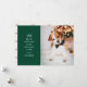 The front pairs your favorite holiday pet portrait with elegant typography and a deep evergreen panel for a timeless Christmas feel. The back continues the polished theme with a matching bow pattern and customizable greeting message.
