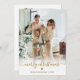 Elegant Minimalist Gold Script 4 Photo Merry Christmas Holiday Card. This festive and modern holiday card design features a beautifully hand-lettered Merry Christmas script in whimsical, swirly gold calligraphy over your main photo on the front. The back includes space for your personalized holiday message, accented with a sweet little heart doodle, along with a 3 photo collage layout — making it a lovely 4-photo design overall.