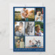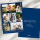Le design comporte un texte moderne en gras qui dit "Peace Love Joy" avec nom de famille personnalisé modèle dans un élégant script manuscrit et plusieurs photo collage carte de voeux vacances. Le bleu marine avec argent ajoute une touche moderne et sophistiquée, ce qui en fait un parfait souvenir pour vos proches.