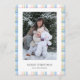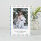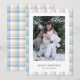 This simple, modern Christmas card features a soft plaid check border in gorgeous pastel colours — including a touch of pink that feels fun, warm and perfectly seasonal. The clean layout keeps your photo front and centre, with editable text below for your greeting and family name.