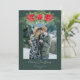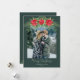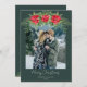 Beautiful Christmas card with poinsettia, greenery, and pine surrounding a photo arch. Lovely script text in white says Merry Christmas (or add your greeting) along with your family name(s). This forest green color is on trend and gorgeous! Such a pretty card for the holidays.
