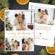 Modern Elegant Calligraphy 3 Photo Collage Merry Christmas Holiday Card in Gold and White. Share festive cheer with this modern holiday card featuring a stylish gold and white theme. The front showcases a clean 3 photo collage layout paired with a beautiful hand-lettered “Merry Christmas” script in whimsical swirly faux gold calligraphy on a white background. The reverse side includes a pre-written holiday greeting with a sweet little heart doodle, along with an additional photo spot — making it a 4 photo design overall.