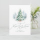 Modern minimalist Christmas card features watercolor pine tree and elegant merriest Christmas script in sage green, modern and simple.
