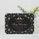 Elegant black, white and gold holiday card featuring reindeer and winter greenery inside a snowflake frame. A beautiful script font is used to add more festive look to this greeting card. Easily personalize this non photo holiday card online.