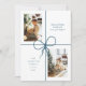 Wrap your holiday wishes in style with this modern, minimal Christmas card featuring a teal ribbon bow across the center. Designed with a unique diagonal photo layout—one sweet snapshot above left, one charming moment bottom right—this card is the perfect blend of cute and elegant. A festive favorite for those who love a fresh, fashion-forward take on tradition.