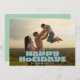 MODERNE Bold Retro Blue Typographie Photo HAPPY Holiday Card