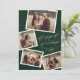 Moderne Script 4 Photo Collage Carte de vœux Joyeux avec message supplémentaire de la famille au verso. Cliquez sur le bouton Personnaliser pour personnaliser ce design avec vos photos et votre texte.