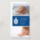 Show off your beautiful family with this photo card done in cool winter colors. A graphic Hanukkah dreidel outlined by white dots serves as a frame for your monogram Add your customized message next to it and don't forget your gorgeous family Available in alternate colors with matching large photo announligngerlabels, stickers and more !