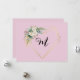 Des roses roses et blanches vintage et de la verdure avec un cœur géométrique doré avec monogramme floral sur fond rose blush avec monogramme de texte en calligraphie personnalisable