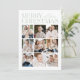 Carte photo moderne de Noël avec "Joyeux Noël" affichée en haut du design en lettres menthe tendance avec un arrière - plan blanc. Un collage photo de 9 photos est présenté ci-dessous dans une mise en page en grille. Personnalisez la carte de Noël multiphoto avec votre nom de famille. La carte inverse pour afficher un arrière - plan vert menthe avec des points blancs subtils (neige).