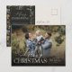 Célébrez la saison en beauté avec cette carte postale horizontale de Noël de Redwood & Vine Design Co. Votre photo de famille préférée est mise en valeur par d'élégantes lettres blanches pour un look de vacances intemporel, tandis que l'arrière comporte un motif botanique coordonné pour un détail de finition festive. Parfait pour envoyer des voeux personnalisés, cette carte de vacances est conçue pour apporter joie et sophistication à vos mailings de Noël.